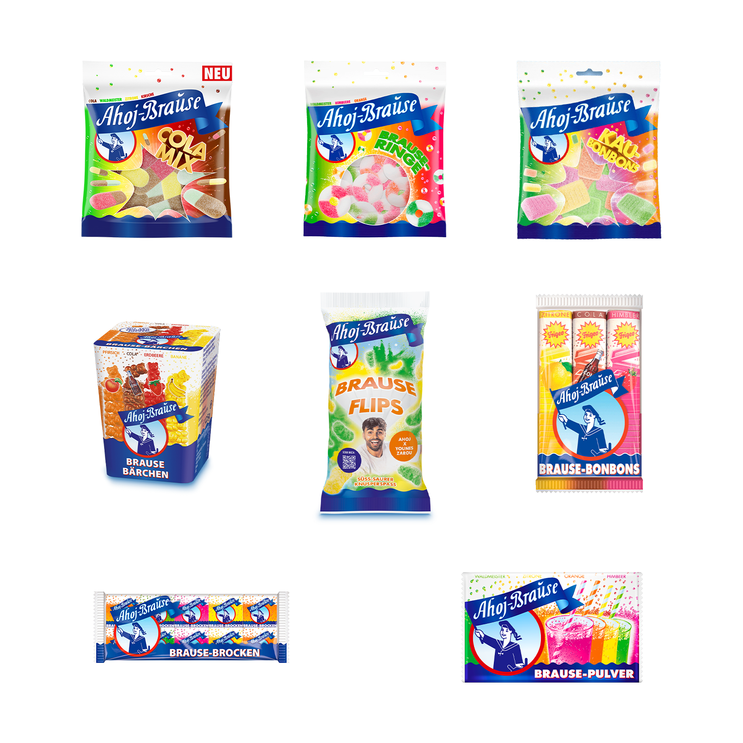 An essential selection of fizzy Ahoj Brause candy, this box includes 8 styles and includes 10 items in total.