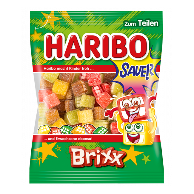 Brixx Sauer are sour sugar-coated, well... bricks! Gummy frames with delicious chewy candy inside, in both fruit and cola flavors.